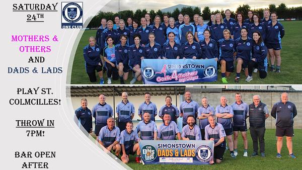 Both our Mothers & Others and Dad's & Lads welcome St. Colmcilles to Simonstown this Saturday evening at 7pm for a game of friendly, non-competitive football! The bar will be open afterwards for the chats!